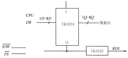 27.题27图是利用74LS374和74LS123连接构成单线握手输出并口,请完成连线,并注明数据线的方向.